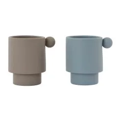 Tiny Inka kopp 2-pakning fra OYOY er laget av silikon og har et både slitesterkt og innbydende sylinderformet design med små kuler som håndtak. Koppene er utformet for å lære de minste i familien å drikke på egen hånd og kan med fordel kombineres med andre deler i Tiny Inka-serien for å skape et lekent og innbydende måltid.