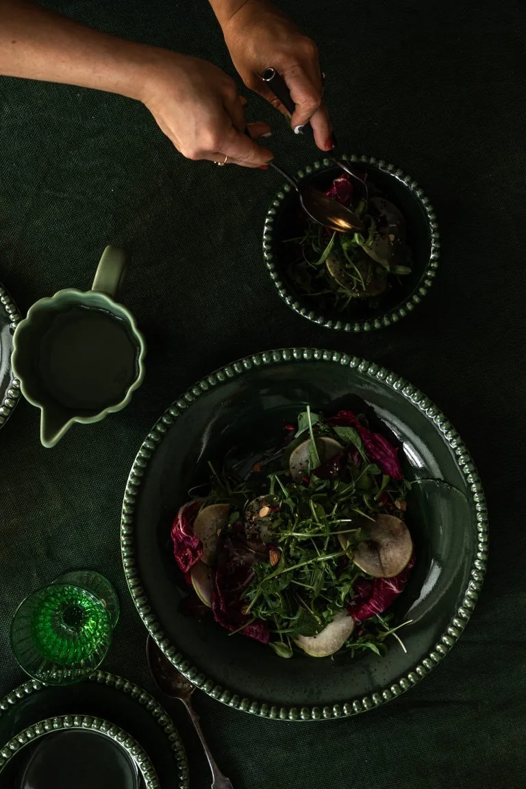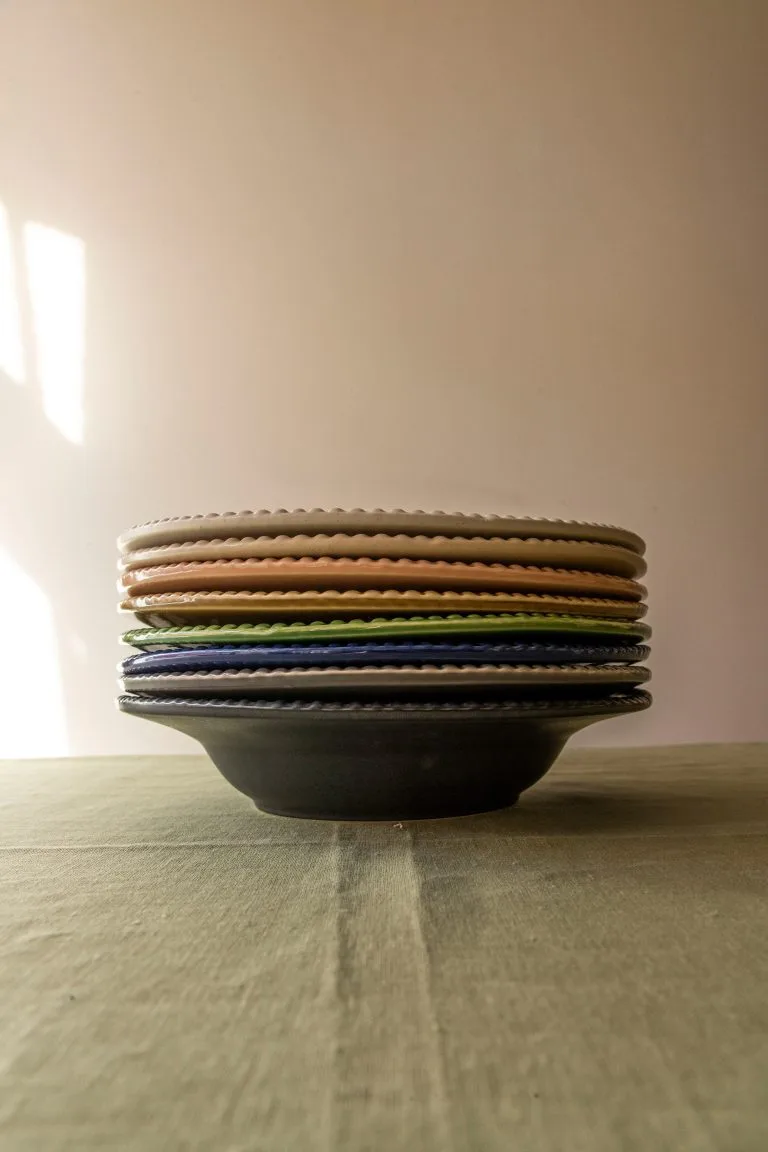 Daria pastatallerken Ø 35 cm fra svenske PotteryJo er en håndlaget dyp tallerken laget av steingods av resirkulert leire. Den har en vakker relieffdekor der merkets grunnlegger Johanna Hampf har hentet inspirasjon fra planteriket og dets livssyklus. Tallerkenen har den perfekte formen for en god pasta og kan med fordel også brukes som fruktskål, salatskål eller serveringsskål. Kombiner gjerne forskjellige farger og deler i Daria-serien for en komplett og personlig oppdekking.